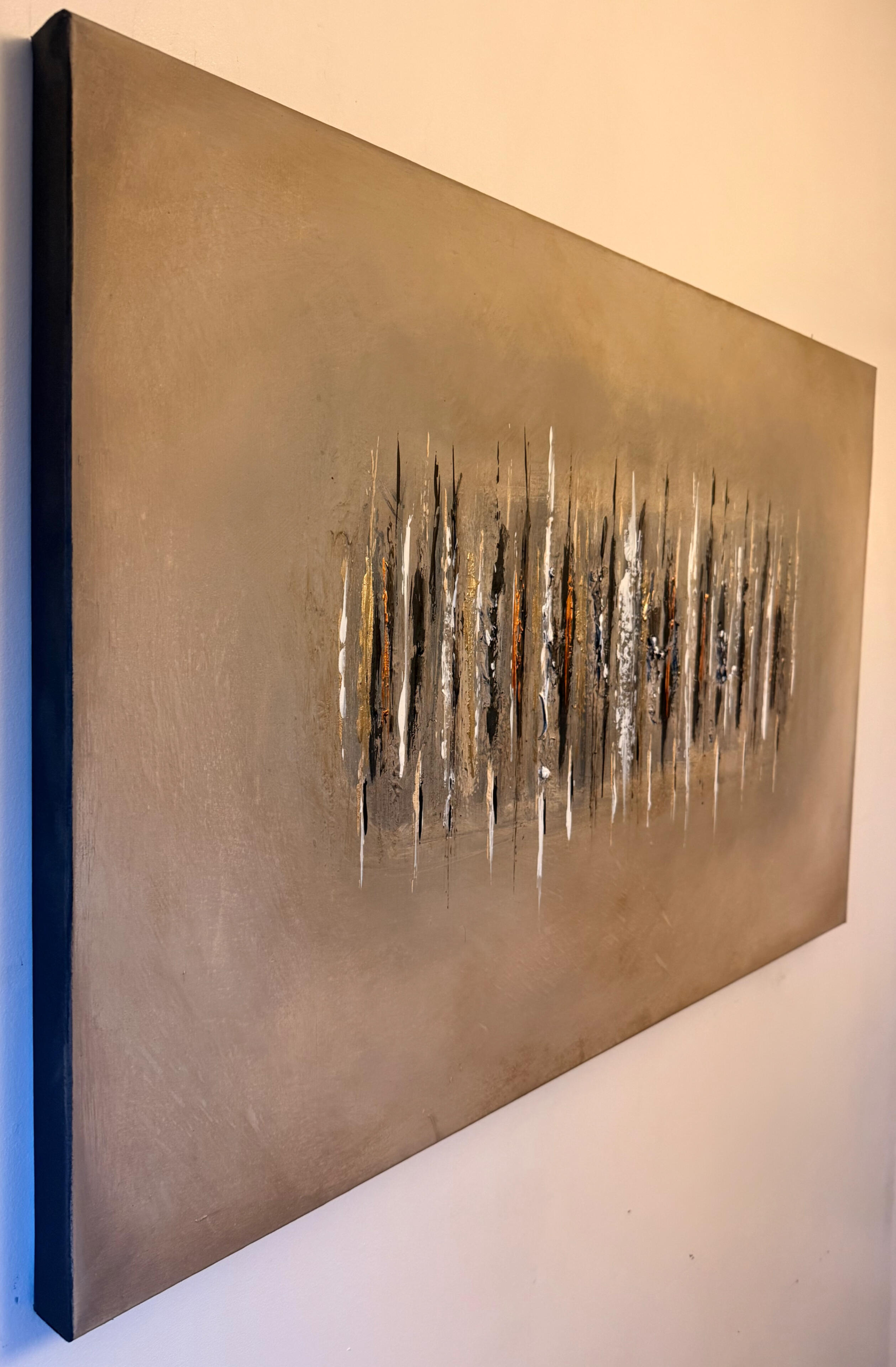 Explore bold, extra large, metallic highlights in this captivating heavily textured statement piece, perfect for any environment.
